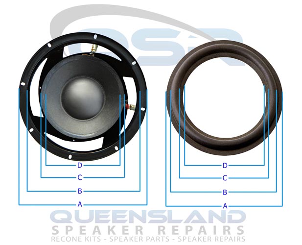 - D: 130 mm, INNER DIAMETER OF THE SURROUND